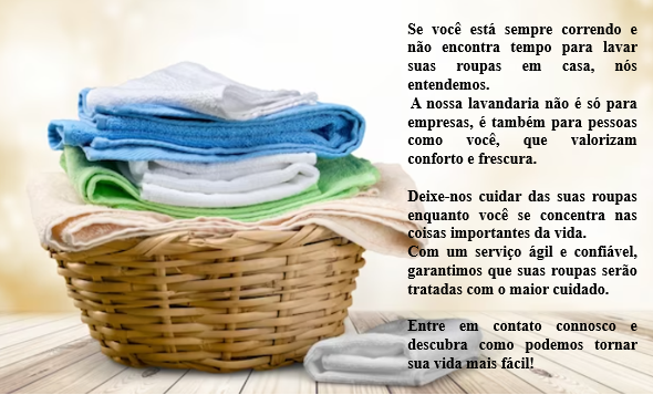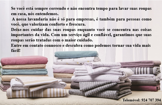 Bem-vindo à Lavandaria Brava, onde transformamos a sua casa num oásis de frescura e conforto. Somos uma lavandaria recentemente inaugurada, dedicada a cuidar dos seus têxteis de lar com carinho e precisão. Aqui, garantimos que as suas roupas de cama, toalhas e outros têxteis de casa estejam sempre limpos, cheirosos e prontos para lhe proporcionar momentos de conforto e relaxamento. Utilizamos os melhores produtos e técnicas de lavagem para garantir a qualidade e durabilidade dos seus artigos.